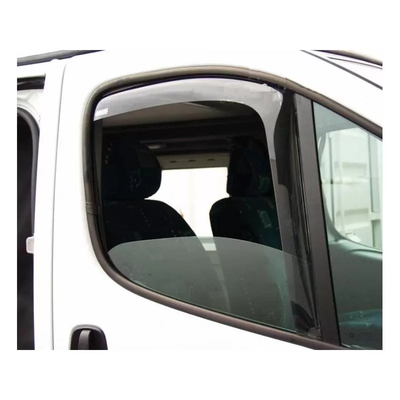 Déflecteur d’air spécial pour RENAULT Trafic 2 (de 2001 à 2014), équipement pour fourgon aménagé permettant de laisser les vitres avant latérales ouverte par temps de pluie. Montage sans outils.