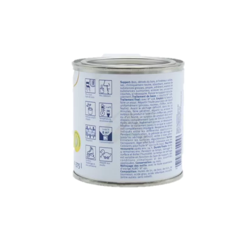 - Composition : huile de lin, huile de bois, huile de ricin, huile de tournesol; acides gras, acide stéarique, siccatifs