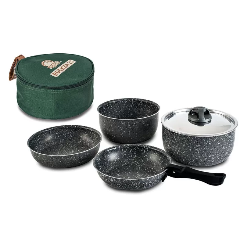 PrĂ©vu pour un rangement optimal dans les placards et compartiments de votre fourgon ou bateau, l’ensemble est vendu avec son sac de manière Ă ce que tous les ustensiles puissent s’empiler et ainsi se ranger dans cette housse de transport.