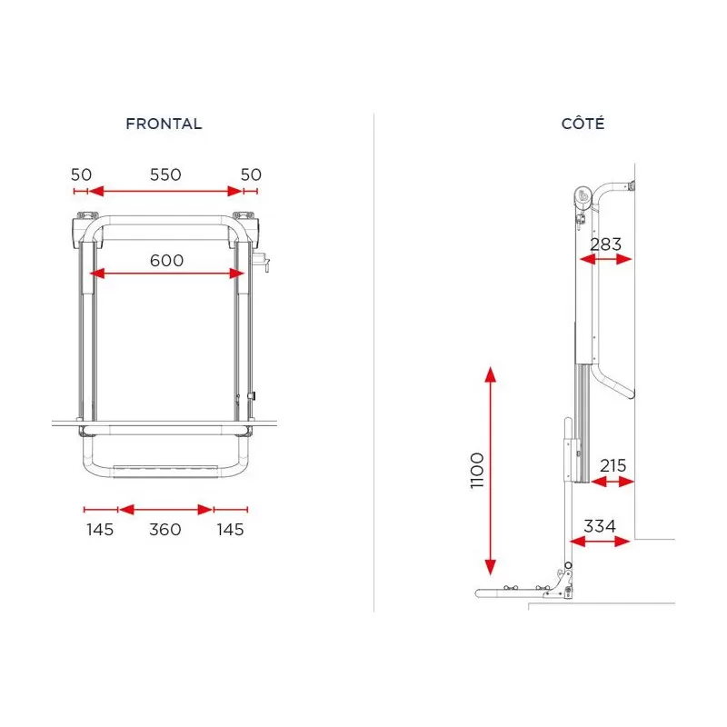 – Hauteur conseillée d’installation par rapport au sol : +/- 1150 mm