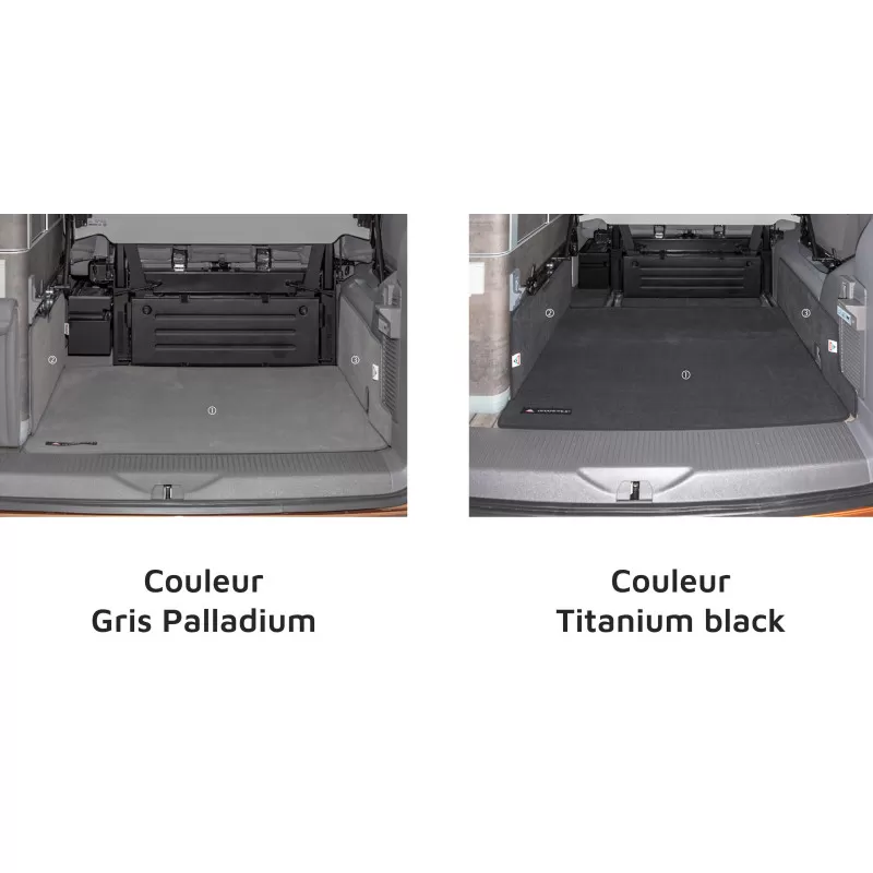 Caractéristiques techniques du tapis de coffre velours spécial VW T5 /T6 et T6.1 :
