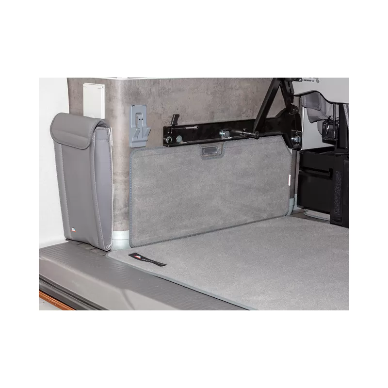 Élégants, ces tapis sont proposés aux couleurs de votre fourgon, soit Gris Palladium ou Noir Titane. Fabriqués en velours, ces tapis apporteront une touche sobre et chaleureuse à votre intérieur. Le tapis BRANDRUP a pour but également d’éviter aux accessoires et autres bagages de glisser pendant la route.