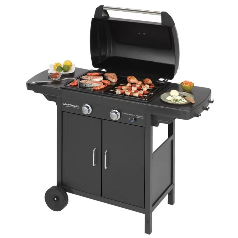Le 2 Series Classic LX D Plas Vario de CAMPINGAZ est barbecue à gaz mi plancha/grille plateau dimensions de 60 x 35 cm avec deux brûleurs. Idéal pour le camping !