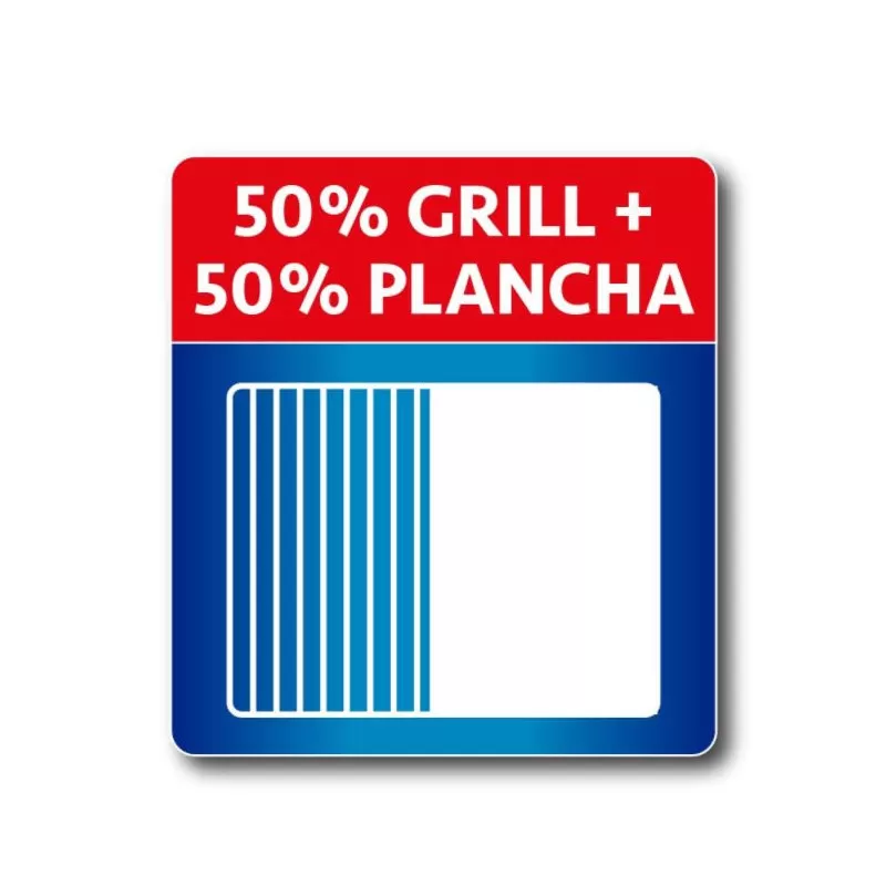 - Surface de cuisson mixte : 50% grille et 50% plancha