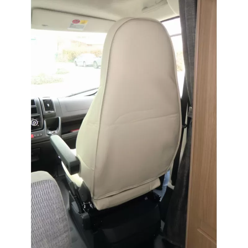 Housses très qualitatives de couleur grise et beige. Accessoires parfaitement adaptées aux fourgons aménagés ou camping-car sur porteur Ducato X250 après 06/2006. La paire de housses est fournie avec son support en mousse pour le repose-tête, de manière à ce que la housse de siège épouse parfaitement la forme de votre fauteuil. Très simple à enfiler, ces housses de sièges disposent d’une fermeture à glissière située à l’arrière.