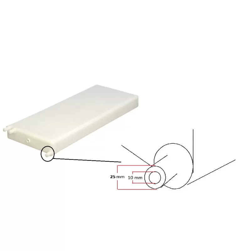 – Trois manchons moulés percés pour tuyau de ø 25 mm (Ø extérieur 25 mm / Ø intérieur 10 mm)