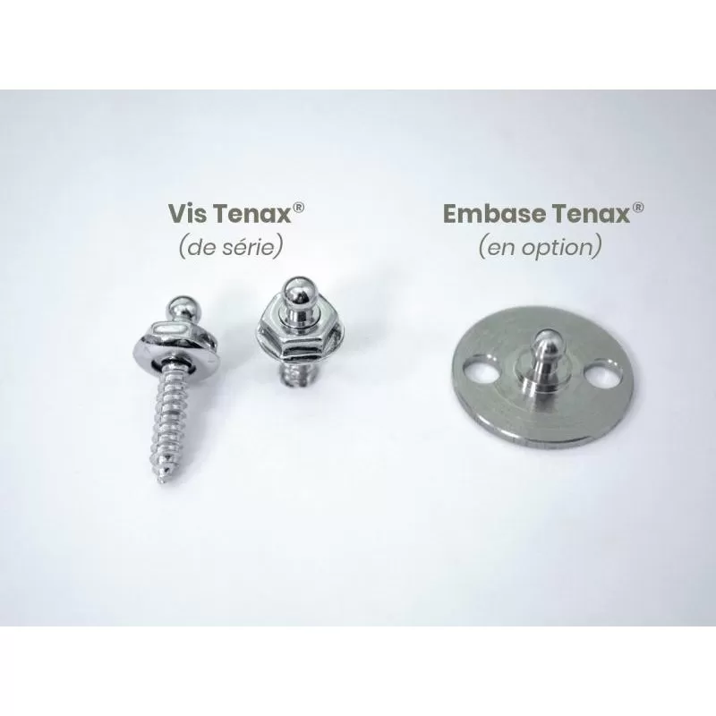 Facile à poser, il est prévu pour être vissé dans votre carrosserie à l’aide des pressions TENAX, mais si vous ne souhaitez pas percer votre véhicule, il existe des embases à coller (en option).