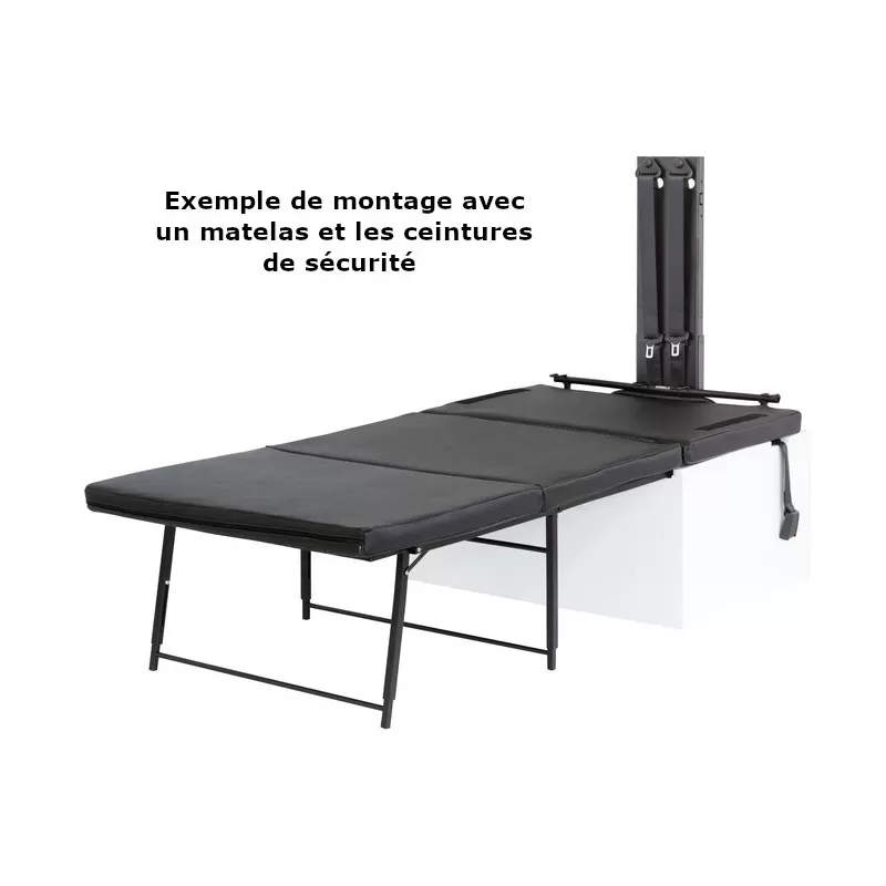 Ce lit escamotable s’adaptera aussi bien aux vans aménagés, aux camping cars mais également aux monospaces grâce à ses pieds télescopiques.