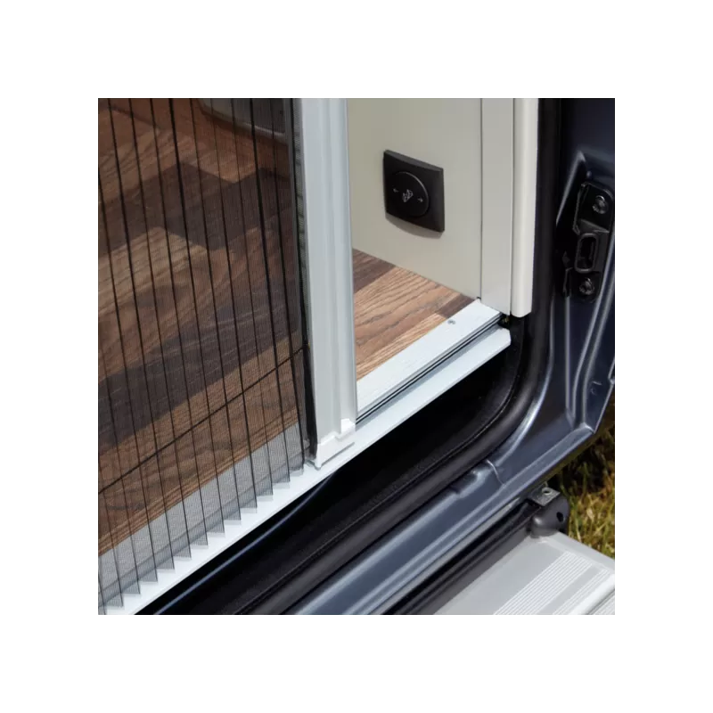Moustiquaire de porte coulissante latérale pour les fourgons aménagés en camping-car, la Flytec FT 200 de DOMETIC convient pour les Ducato, Jumper et Boxer H2 (X250/X290).
