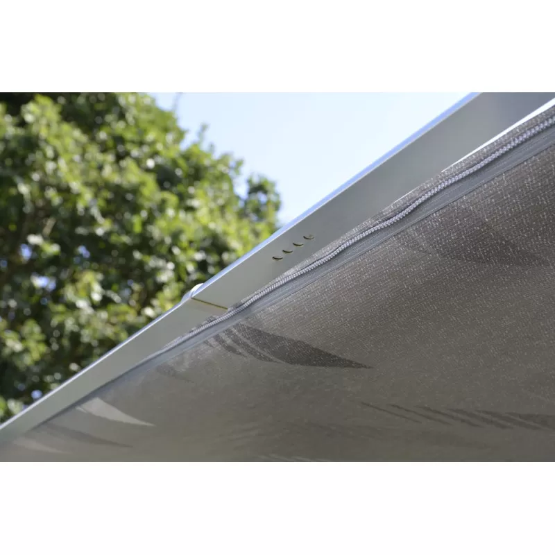 7 tailles sont disponibles pour une zone d’ombrage adapté à votre caravane : de 2 à 4,50 mètres de longueur. Proposé dans une teinte grise très actuelle, sa finition robuste est un gage de qualité pour ce store manuel résistant aux intempéries grâce à sa toile imperméable de 500 g/m².
