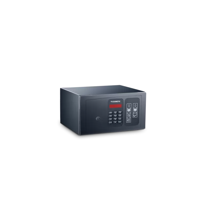 Coffre-fort électronique en acier de la marque DOMETIC, le Safe MD 281 C est verrouillable grâce à un code à 4 chiffres.