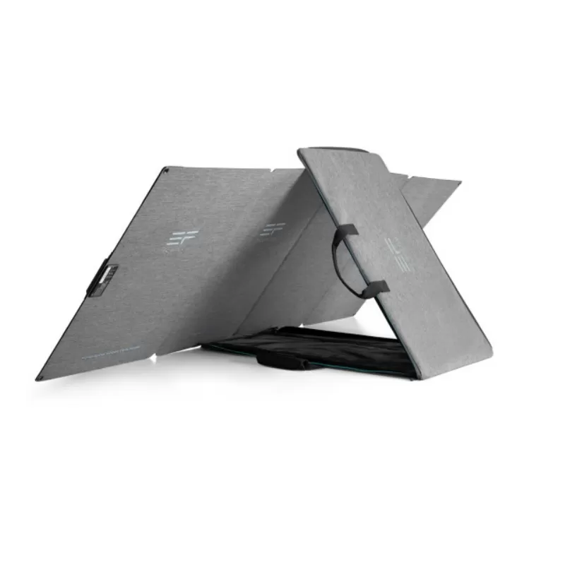 Idéal pour produire de l’énergie en toute autonomie, ECOFLOW propose ses panneaux solaires PERC de 110 W. Pliable, le format valise est particulièrement adapté & pratique pour le transporter. Sa mise en place reste simple, dépliez le, branchez les connecteurs sur votre batterie & le tour est joué. Sur trépied, vous pourrez recharger votre batterie rapidement grâce à la meilleure exposition au soleil. Doté de 32 cellules, le panneau portatif offre un rendement de 22%. Le film de protection en ETFE protège les cellules des rayons UVs afin de conserver son efficacité plus longtemps. Pour une recharge complète de la batterie 3 à 6 heures seront nécessaires par charge solaire.
