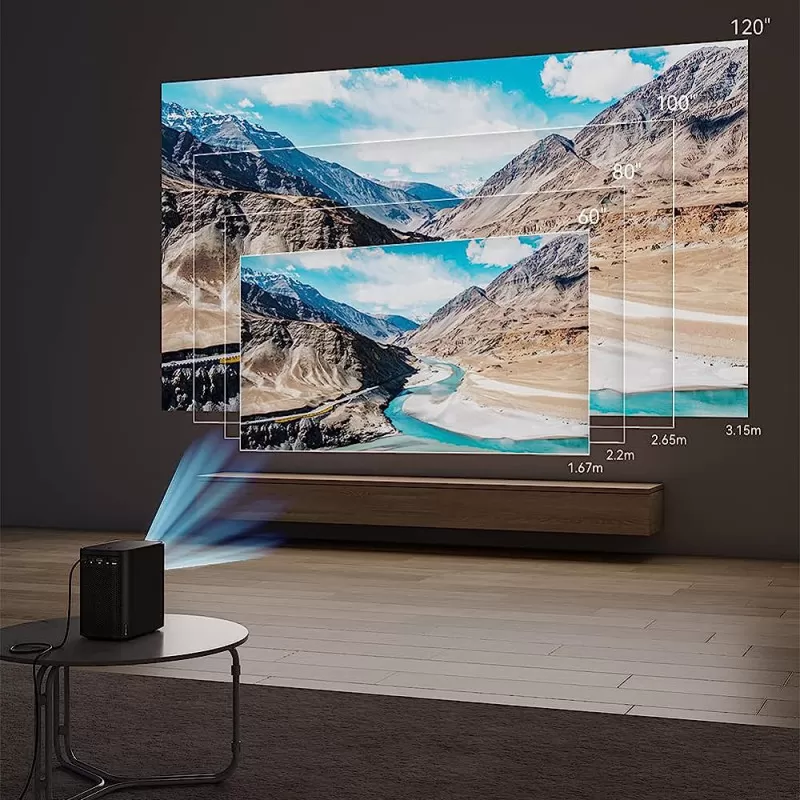 Ce miniprojecteur est capable d’afficher une image de 66″ (152 cm de diagonale) jusqu’à 120″ (304 cm de diagonale).