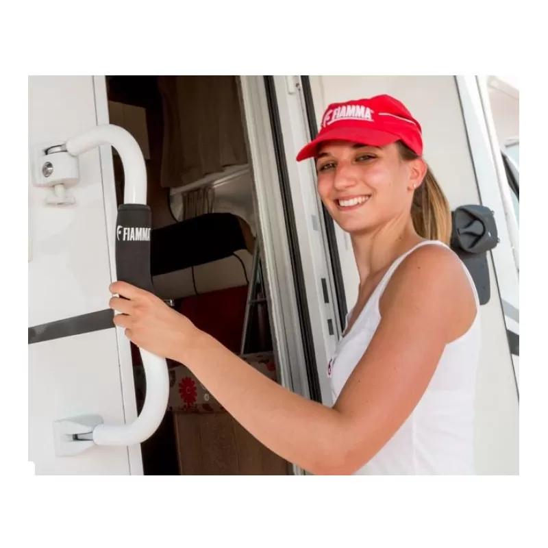 Verrou, serrure de porte d’entrée et main-courante pour les camping-cars ou fourgons aménagés ; le FIAMMA Seurity S offre une forme incurvée ergonomique.