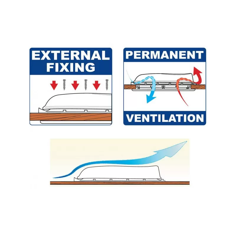 - S’adapte et remplace les ouvertures : De 39 x 39 cm à 42 x 42 cm