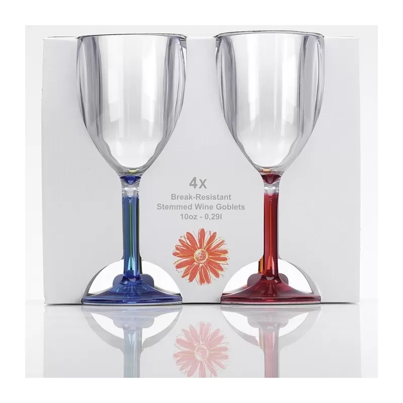 Ces verres à vin disposent d’un pied coloré qui égayera votre table de camping. Malin, ces verres à vin sont entièrement fabriqués en acrylique ce qui les rend résistants et pratique à emporter en camping ou à bord de votre bateau.