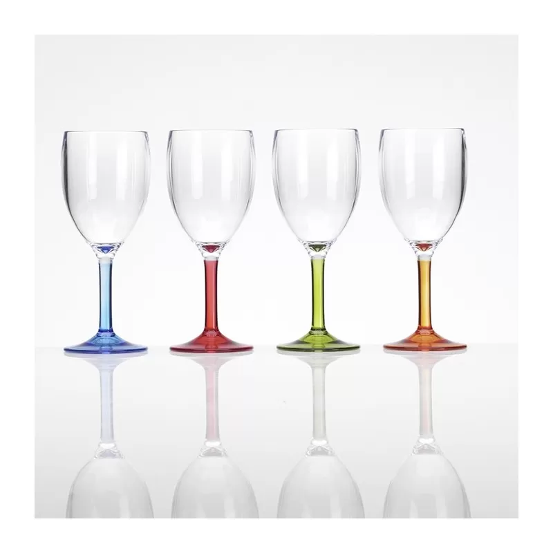 Verres à vin à pied entièrement en acrylique pour apprécier un apéritif entre amis même en vacances en camping, en bateau ou en camping-car.
