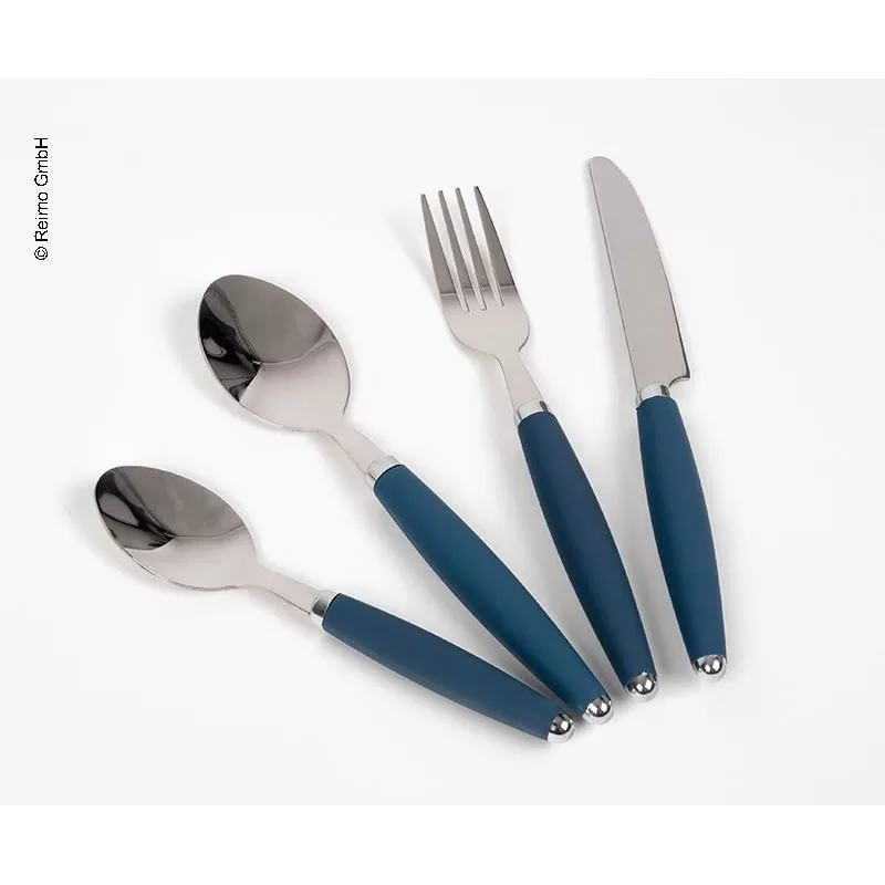 Lot de 16 couverts HOLIDAY TRAVEL avec manche bleu et lame inox pour équiper votre cuisine en camping-car ou en bateau mais aussi en camping.