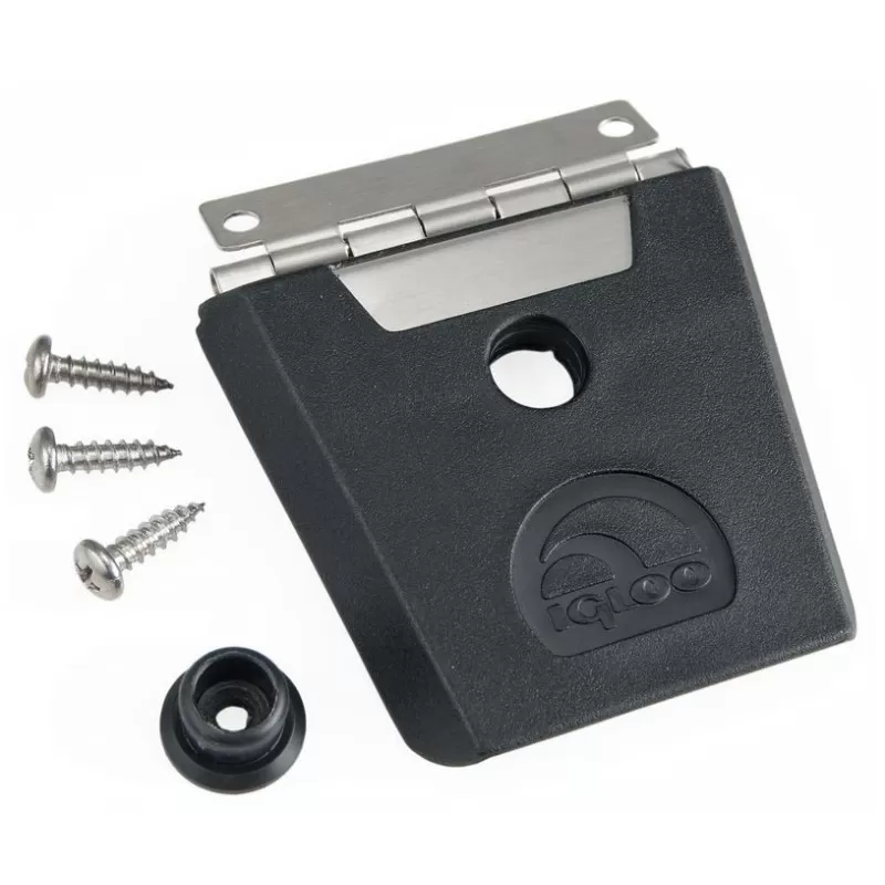 Pièce détachée pour glacière de bateau IGLOO Marine Ultra : kit fermeture de rechange hybride plastique et inox avec visserie.