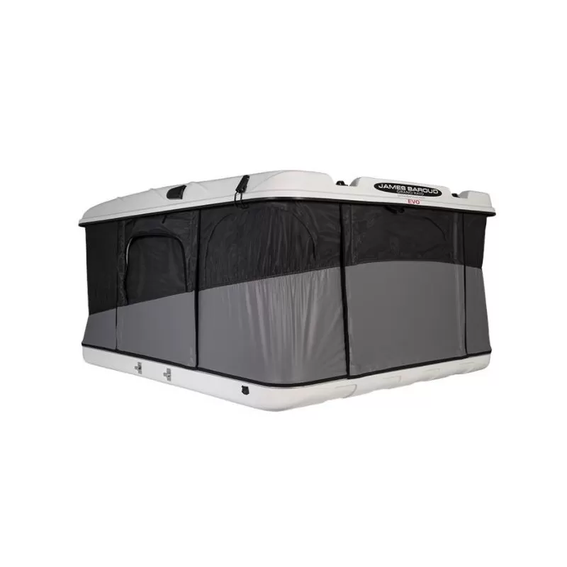 Le Grand Raid de JAMES BAROUD est le must-have de la tente de toit : une tente spacieuse, bien équipée avec des options supplémentaires pour agrémenter et simplifier votre séjour que vous soyez en 4×4, en van aménagé ou fourgon.