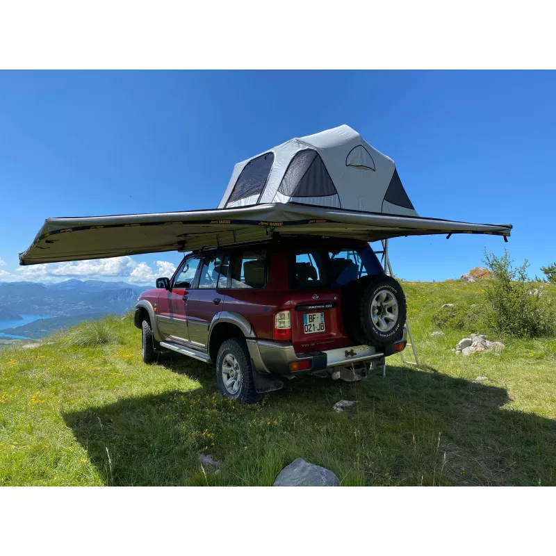 Un store extérieur combiné à votre tente de toit JAMES BAROUD : l’auvent Falcon est un incontournable ! L’accessoire de camping par excellence pour séjourner quelques jours au même emplacement tout en étant protégé du soleil et des intempéries diverses.