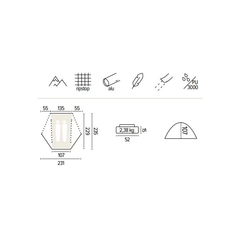 Spacieuse, la tente dispose de deux entrĂ©es, d’une bonne hauteur sous plafond et grâce aux 230 cm de longueur vous pourrez ainsi ranger votre matĂ©riel Ă vos pieds. Par beau temps, le tente intĂ©rieure peut se monter seul pour ainsi PROFITER du paysage tout en se protĂ©geant des insectes.