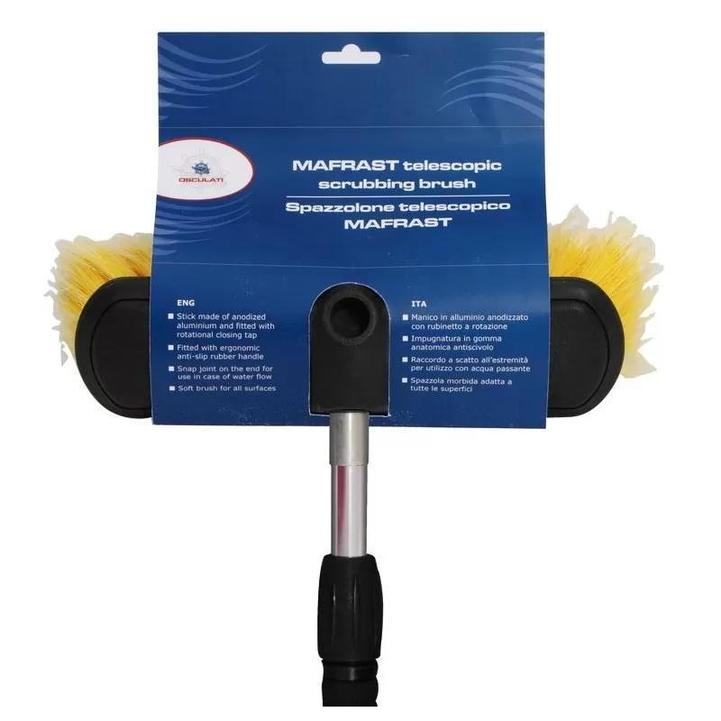 Equipement spécial pour le bateau et camping-car, le manche est également doté d’une arrivée d’eau pour y connecter un tuyau d’arrosage très utile pour un rinçage en profondeur.