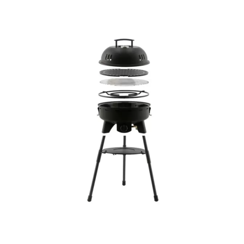 Alimenté au gaz donc, il est vite allumé et prêt à cuire tout vos mets en quelques secondes seulement. Avec ses pieds amovibles, il est facilement transportable mais peut aussi se poser directement au sol ou sur une table sans ses pieds ! Avec le bouton de réglage en 3 niveaux et son thermostat intégré au couvercle, vous pourrez contrôler parfaitement la cuisson de vos aliments !