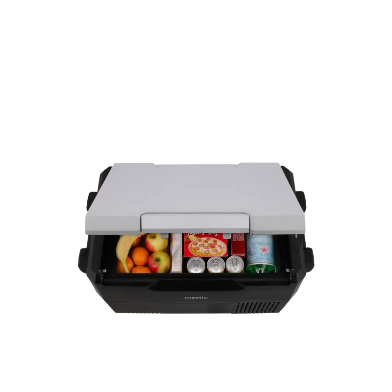 Glacière à compresseur alimentation 12/24V, la MESTIC Cool Box MCCHD-33 AC/DC vous suivra pour toutes vos activités nomades en ayant d’excellentes performances de froid. Volume de 31 L idéal en van, bateau ou camping.