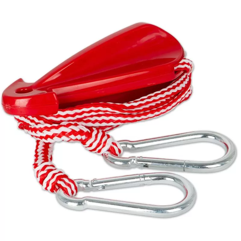Si votre bateau n’est pas équipé d’un mât de traction ou d’un arceau de traction, nous vous conseillons l’ajout de cet accessoire qui le remplacera. Le V bateau est une patte d’oie destinée à s’accrocher au tableau arrière du bateau grâce aux deux mousquetons afin de répartir la charge et de se dégager du moteur. Avantage : le palonnier ou la corde de traction suit parfaitement l’utilisateur facilitant la glisse !
