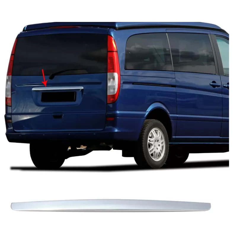 La baguette autocollante OMAC est une protection pour le couvre éclairage de plaque d’immatriculation arrière. Cette protection en inox chromé offre un belle finition au hayon du fourgon aménagé MERCEDES Vito W639 de 2004 à 2014.