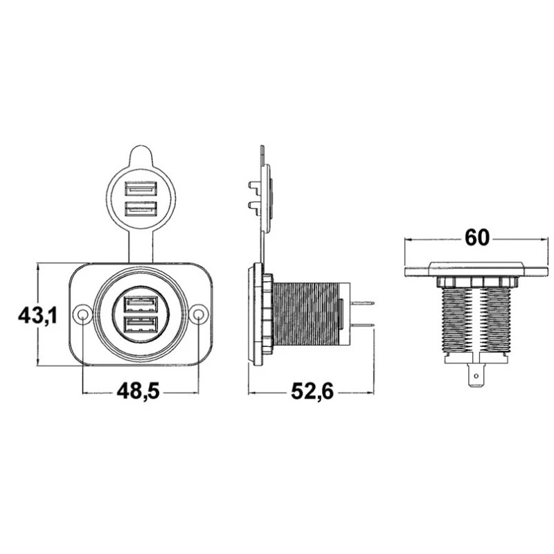 Caractéristiques techniques de la OSCULATI Prise double USB blanche accessoire bateau et fourgon aménagé :