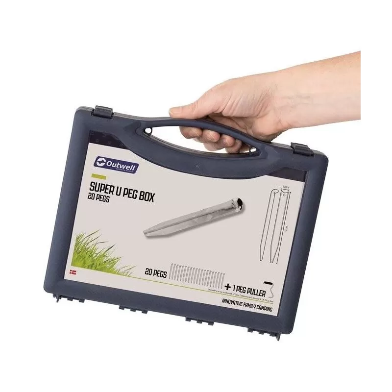 La boîte de piquets Super U est un excellent outil de campement pour pouvoir installer facilement votre toile de tente, tapis de sol ou auvent de caravane.
