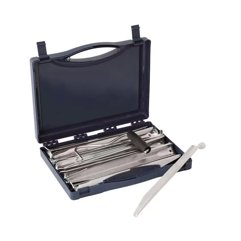 A emmener partout avec vous, cette boîte contient 20 piquets en acier mais aussi un tire-fiche et également un arrache-piquet. Muni de 2 profils, utilisez le profil en V pour les haubans principaux et le profil en U pour les haubans généraux. Cette boîte d’accessoires est indispensable si vous partez en vacances en camping.