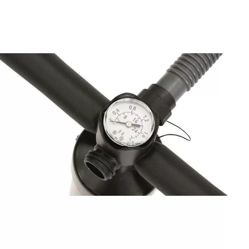 La pompe manuelle « Cyclone » est dotée d’un manomètre d’une pression max de 28 PSI / 2 bar particulièrement adaptés pour le gonflage de vos équipements « haute pression » comme l’annexe du bateau, le sup paddle ou les tentes gonflables par exemple.
