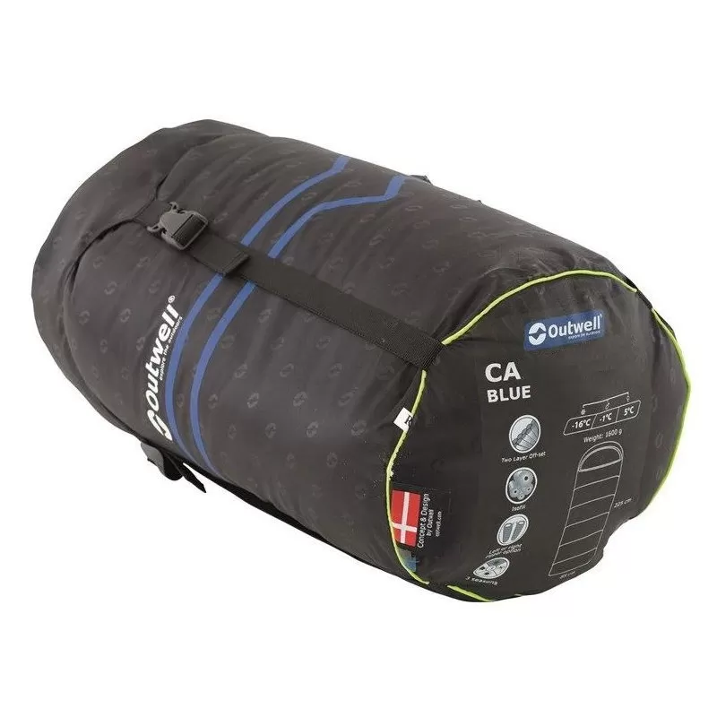 Régulièrement les fabricants de duvet rognent sur les dimensions des duvets pour un gain de place et de poids, Le fabriquant Danois OUTWELL prend un autre parti, avec ce duvet technique à coupe ovoïde, il propose un duvet compact et léger permettant le retournement interne ou de dormir sur le côté.
