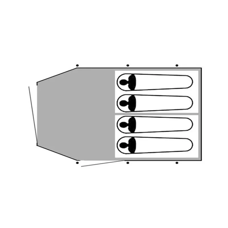 – Membrane extĂ©rieur (toit) : Nouveau tissu Ripstop Polyester 210T, PU + double traitement anti UV, Ă©tanche Ă une colonne d’eau de 2000 mm
