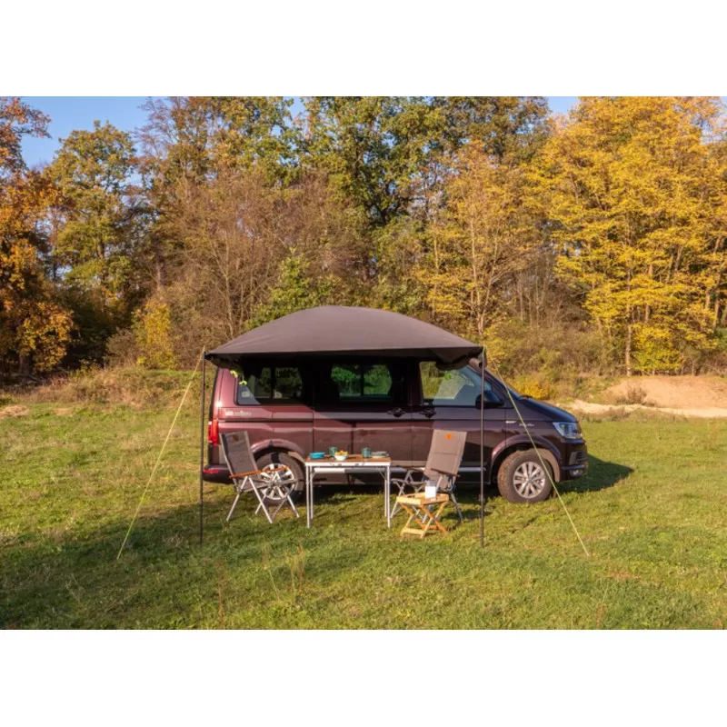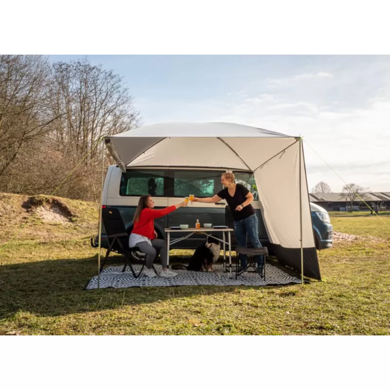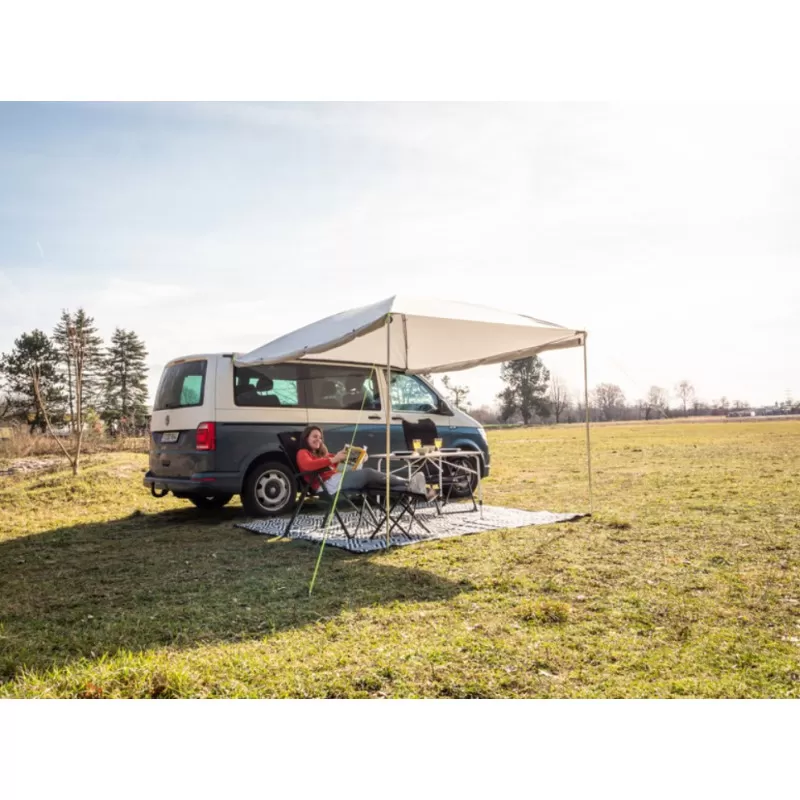 Auvent latéral de la marque REIMO pour fourgon aménagé, le Mauritius Premium est doté de pare-vent pour une protection optimale lors de vos campements.