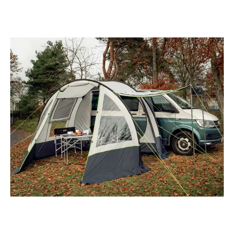 Cet auvent latéral de la marque REIMO en forme de tunnel est très pratique pour les voyageurs qui souhaitent un espace supplémentaire pour créer une chambre, un coin repas ou de détente tout en étant protégé du soleil ou de la pluie.