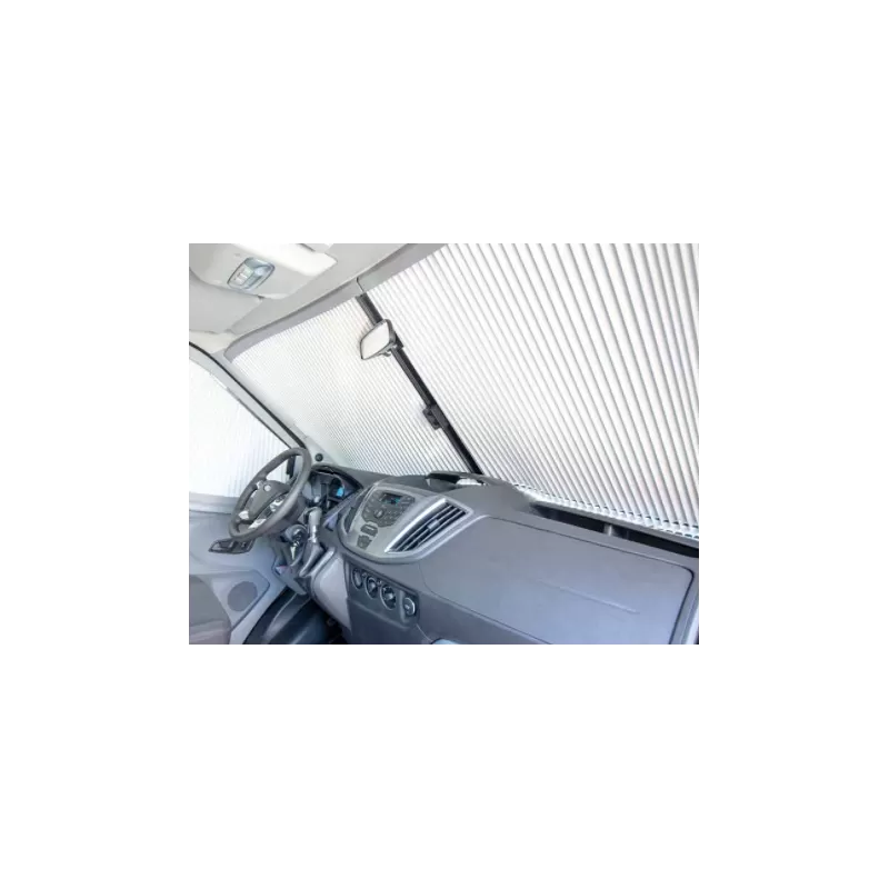 REMIS propose son store Remi Front occultant & isolant thermique pour le pare-brise & les fenêtres latérales spécialement pour les véhicules Ford Transit V363 (à partir de 2019). Facile d’installation, il se monte sur les montants du camping-car ou fourgon aménagé.