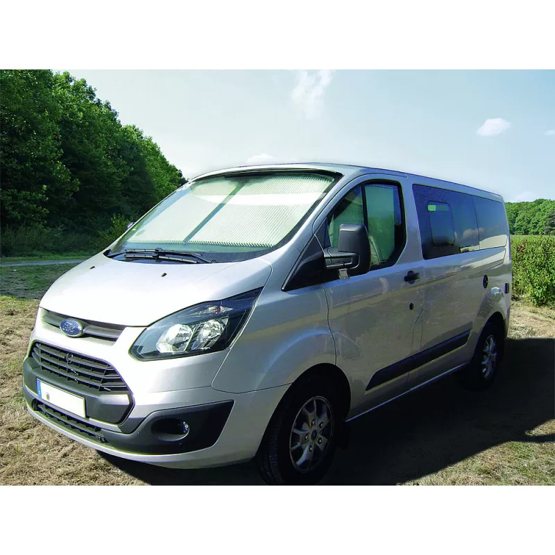 Store plissé pour occulter la cabine à bord de votre fourgon aménagé FORD Transit Custom de 2012 à 2017.