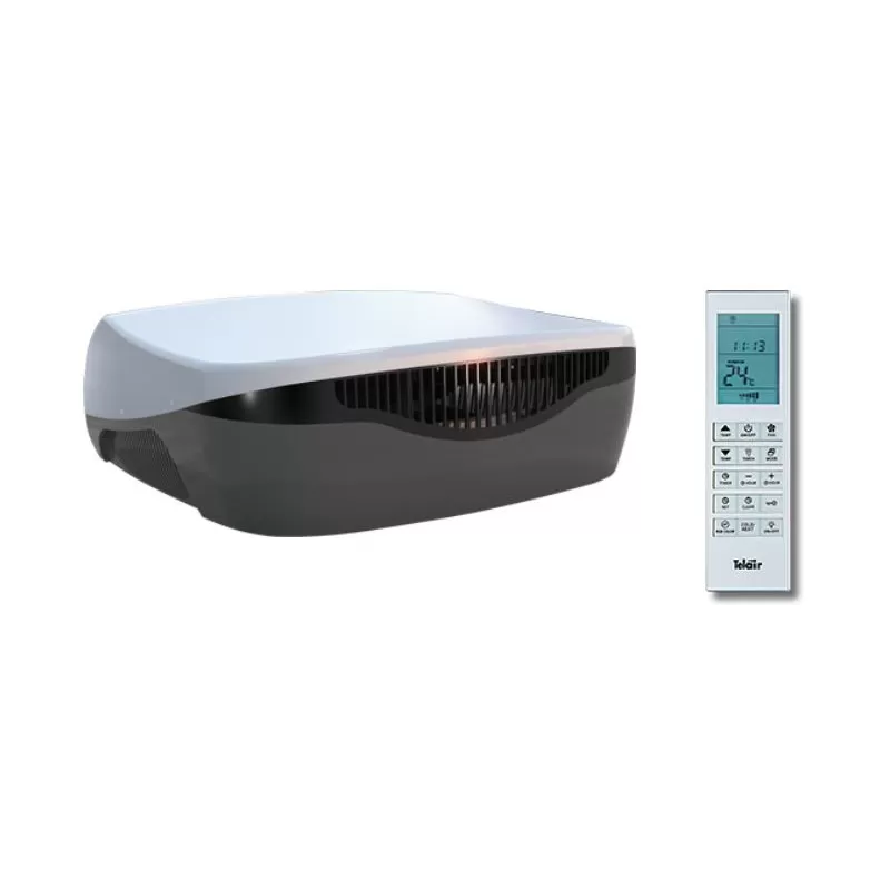 Climatisation de toit 230 V, la TELAIR Clima e-Van 7400H offre une puissance de refroidissement de 2100 W (7200 BTU) idéal pour les fourgons aménagés et camping-cars de 5 à 7 mètres de long. Réversible en mode pompe à chaleur pour chauffer l’hiver