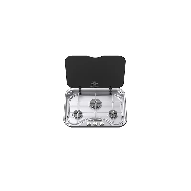 Réchaud de la marque THETFORD en acier inoxydable avec 3 feux de cuisson pour cuisiner à bord de votre camping-car ou de votre bateau comme à la maison.