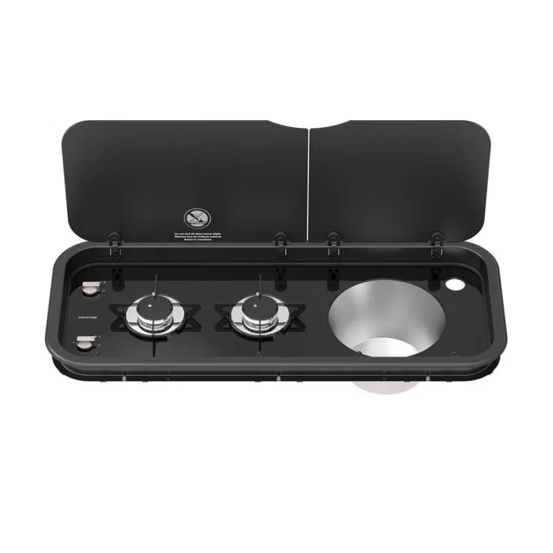 Ce combiné développé par la marque THETFORD fait preuve d’une certaine élégance. Composé de 2 brûleurs situé à gauche et d’une cuve rond à droite, ce magnifique réchaud de cuisine saura vous satisfaire tant sur le côté pratique que visuel. Avec sa garantie constructeur de 3 ans, THETFORD frappe fort avec sa nouvelle gamme Topline dans laquelle vous y retrouverez tout l’équipement de cuisine pour camping-car ou fourgon pour une utilisation « comme à la maison ». Avec son évier en acier inoxydable de 23,5 de diamètre, il saura rendre votre cuisine plus fonctionnelle.