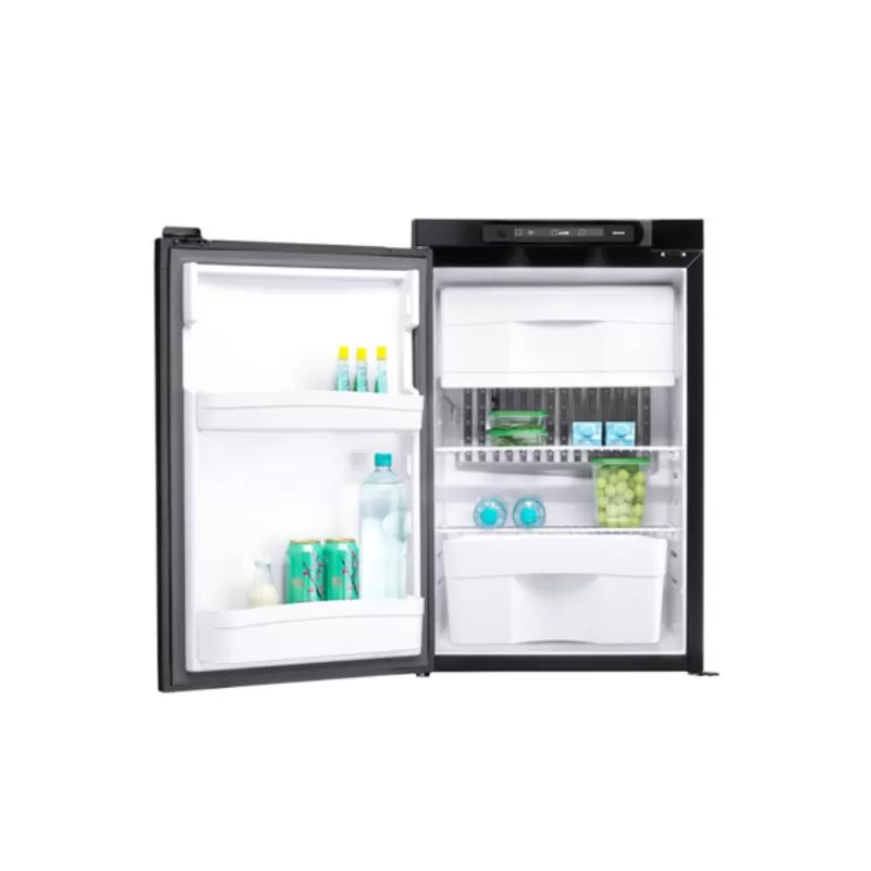 La porte est réversible et livrée en standard avec les charnières à gauche (lorsque l’on regarde le frigo en face). Bref, le parfait réfrigérateur pour un van, un fourgon aménagé en camping-car ou caravane compacte.