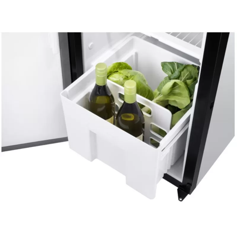 La porte est réversible et livrée en standard avec les charnières à gauche (lorsque l’on regarde le frigo en face). Bref, le parfait réfrigérateur pour un fourgon aménagé, un camping-car ou caravane.