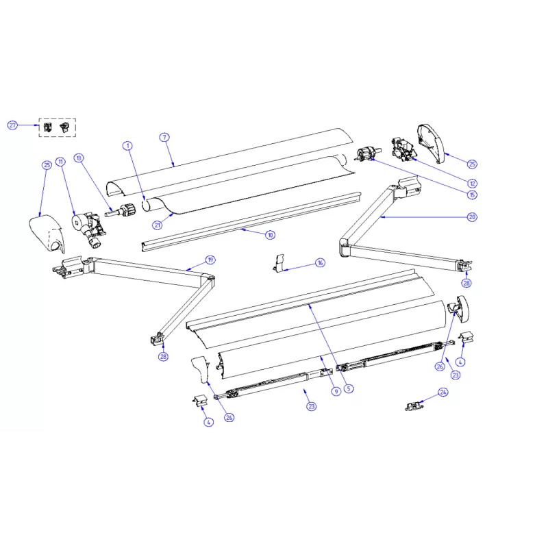 Sur cette vue éclatée, vous disposez de toutes les pièces détachées pour le store Omnistor 6002 pouvant être fournies par THULE. Disponibles en différentes coloris selon votre modèle de store, n’hésitez pas contacter notre équipe pour toutes informations complémentaires.