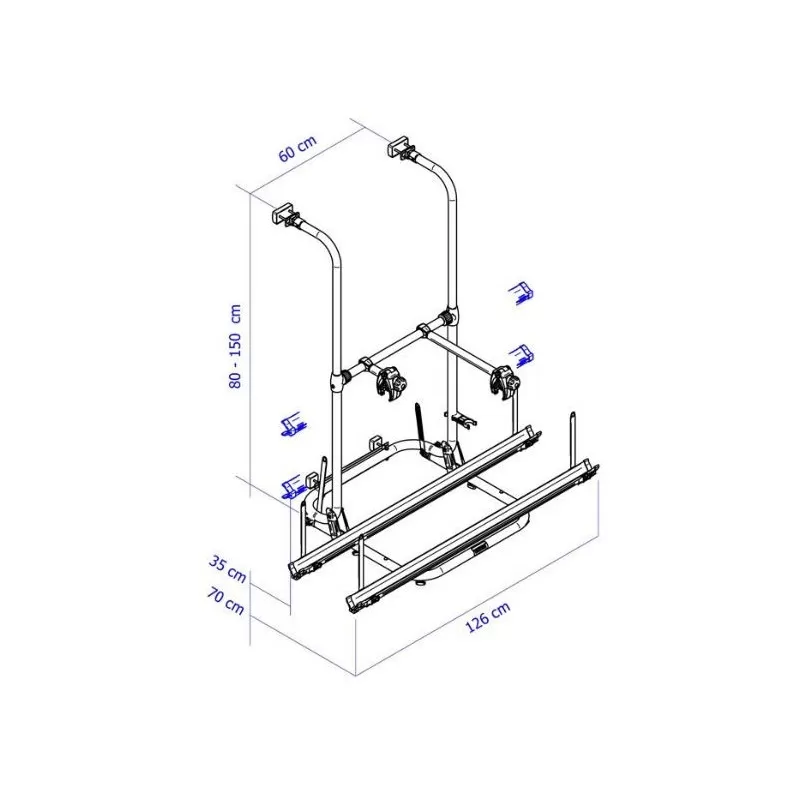 – Nombre de vélo : 2 en standard (3 avec rail supplémentaire en option)