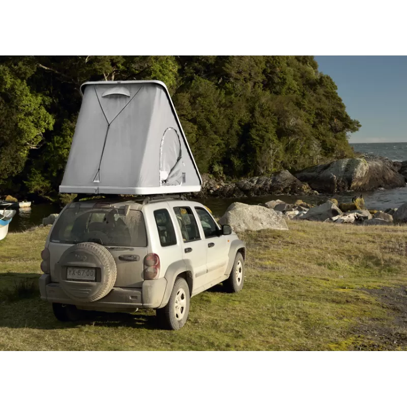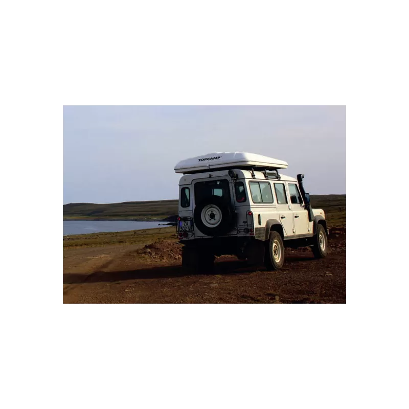La tente de toit Premium de chez TOPCAMP est une coque rigide étanche et isolante qui vient se poser facilement sur les barres de toit de votre fourgon aménagé, de votre 4×4 ou mini-van.