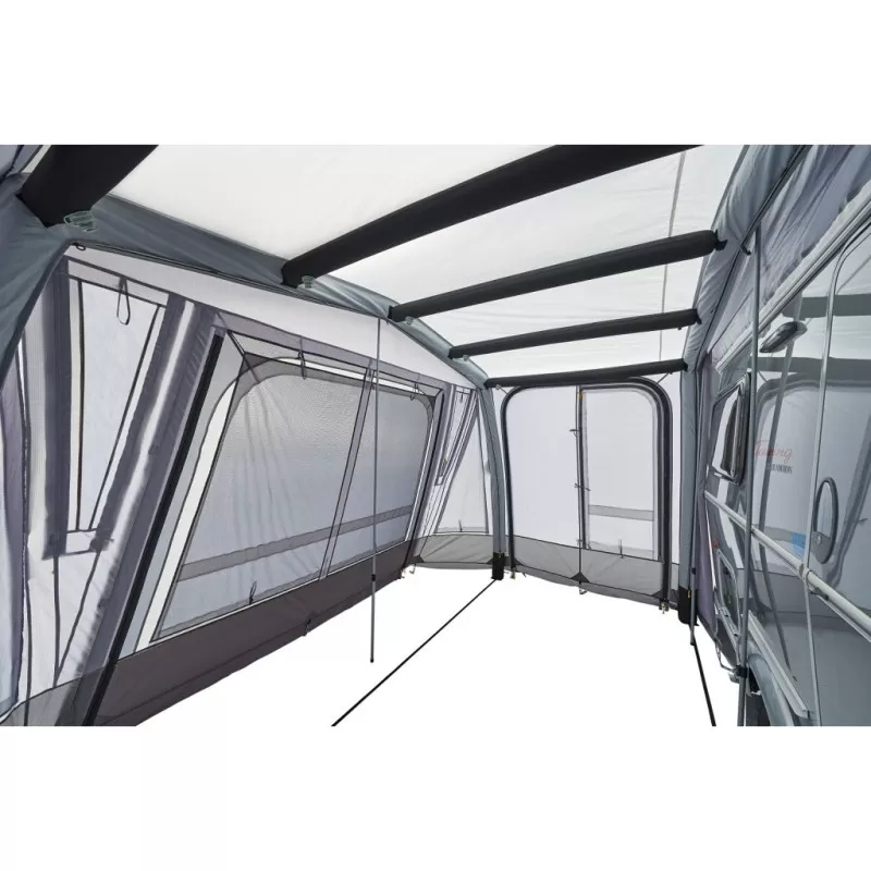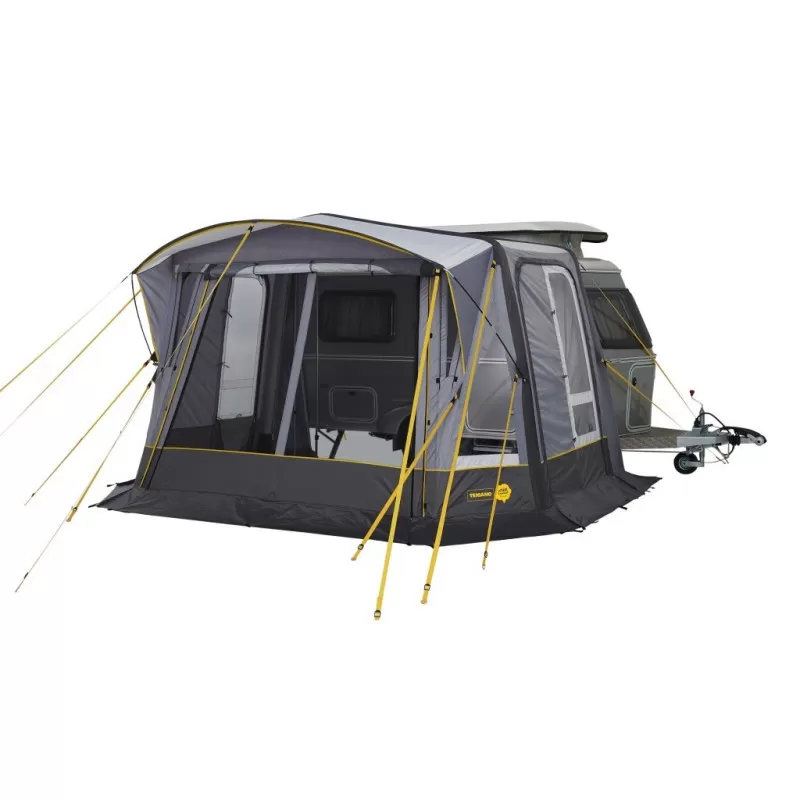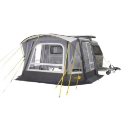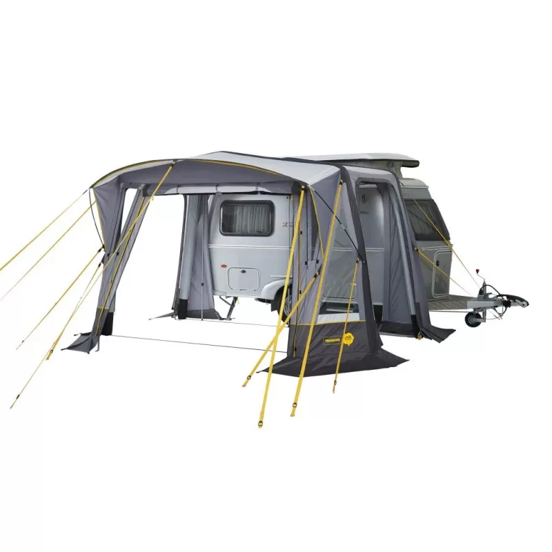 Auvent gonflable étanche spécialement et seulement conçu pour s’adapter facilement et rapidement sur toutes les caravanes surbaissées.